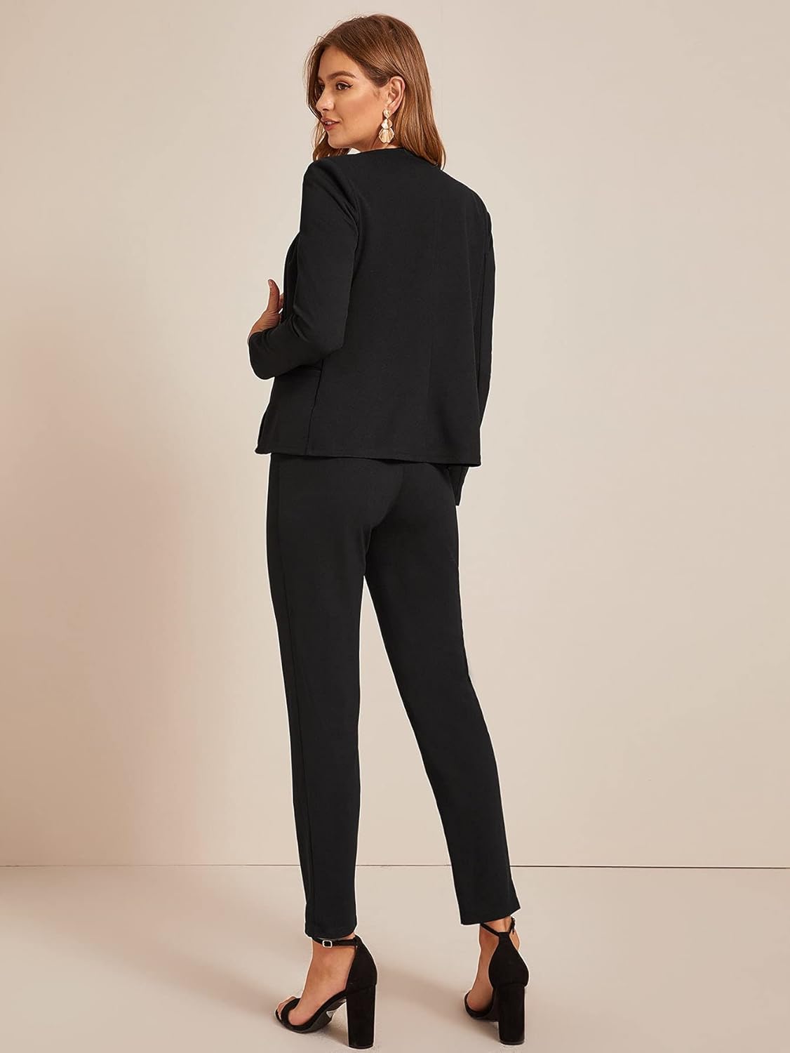 95% Polyester, 5% Spandex Pull On closure Soft fabric with slight stretch promise your utmost comfort, breathable to wear Long sleeve, shawl collar, lightweight open front blazer jacket, matches with a high waisted pencil pants Plain and classic designs, this suit can be easily paired with any crop tops and high heels, like casual tshirt, cami or tank top The 2 piece cropped pants suit ideal for casual or formal occasions such as work, business trips, meetings, dinner dates, and hanging outs Please check the SIZE CHART before your purchase