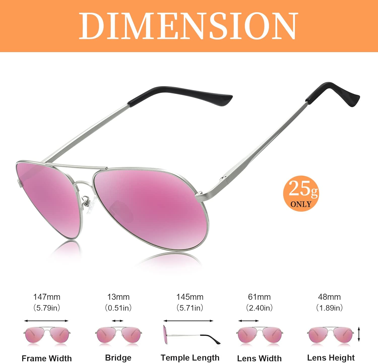 Bridge: 20 millimeters Arm: 155 millimeters Timeless Classic Aviator Sunglasses for Women Men – Aviators sunglasses are the classic design that will never go out of fashion. Everyone can wear Aviator sunglasses and will get a lot of compliments from people around Unique-Design Cute Sunglasses for Women – You can find Women's classic siamese one-piece sunglasses. The right blend of huge square frames and a variety of colored lenses sets these sunglasses apart from the norm Jackie-O Style Are Still Hot - Jackie o sunglasses both protect your eyes and make a stylish fashion statement. They are stunning and flattering, with just the right amount of sparkling rhinestones. You may simply match these womens sunglasses to your attire because they come in standard frame colors including black, tortoise, and floral. Sunglasses with large frames look excellent on everybody, regardless of facial shape Anti-Glare Polarized UV400 Protection Lenses - Polarized lenses filter out glare from the sun to give you clearer vision. UV400 coating helps you block out invisible UV rays, protecting your eyes. With polarized UV400 Protection lenses, you can enjoy every moment of the outdoors No Worries Purchasing Online - With SIPHEW sunglasses, you no longer have to be concerned about shopping online. With equal emphasis on fit, function, and aesthetics, SIPHEW eyewear values every sound from our consumers; please contact us without hesitation if you have any questions Show more