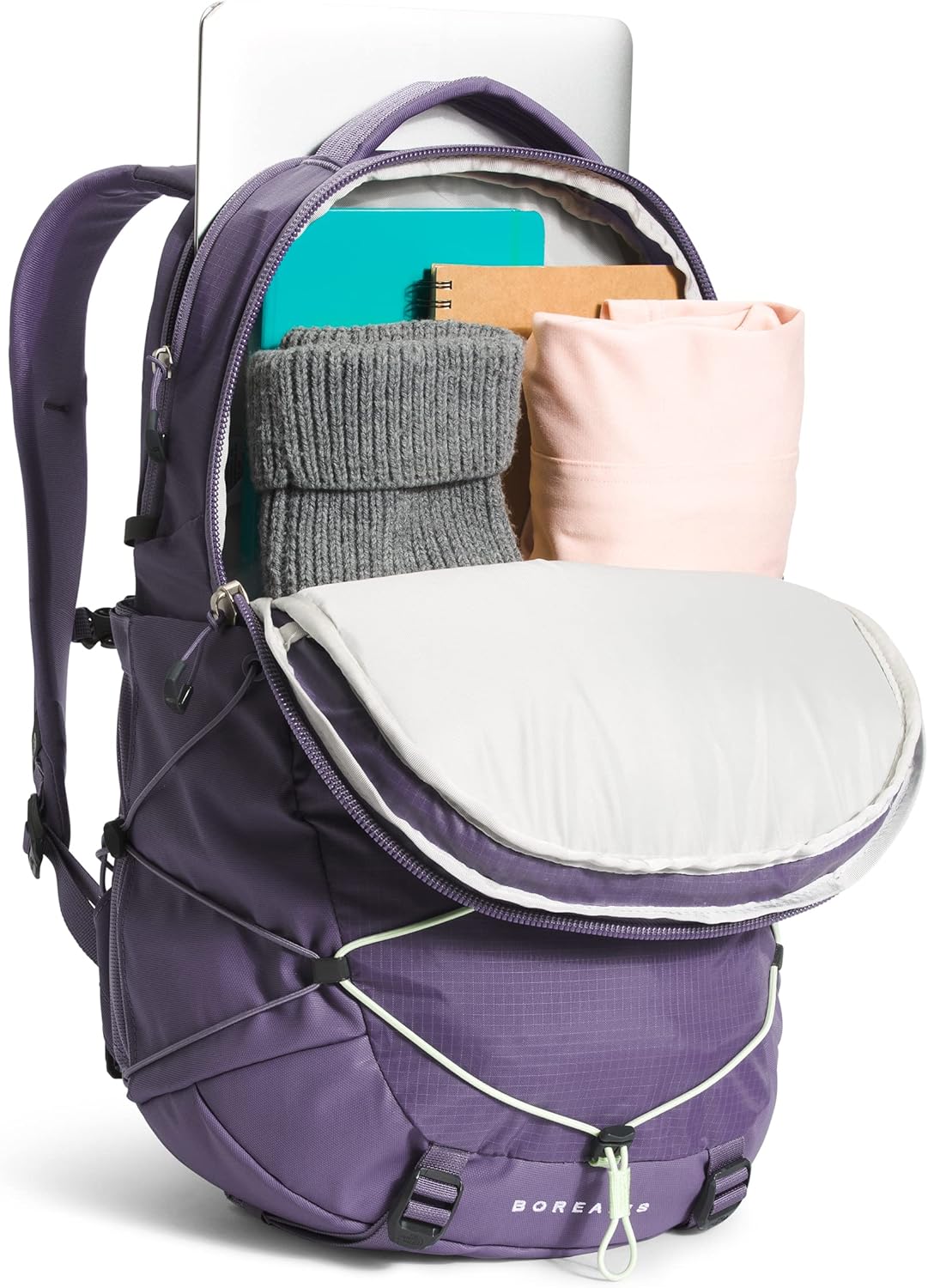 Imported Polyester lining Zipper closure Dimensions: 12 x 6.75 x 18.75 Laptop sleeve: 12.56 x 116 Volume: 27 liters DESIGN & DETAILS: Updated women6 specific backpack FlexVent6 suspension system provides added comfort and breathability Articulated shoulder straps Rounded back panel Soft-touch chemise fabric Stand-up design 360-degree reflectivity enhances visibility External bungee-compression system with clips offers more options for organization Side bungee cords allow for more compression Bottom compression Dedicated, highly protective laptop compartment that fits 15 " laptops Large main compartment for books and binders Front compartment has internal organization with secure-zip pockets and a padded tablet sleeve External, fleece-lined pocket for sunglasses, phone or keys Two durable, external water bottle pockets with quick-draw smartphone access on one side U-pull zippers Padded top handle Sternum strap with whistle buckle Removable waist belt