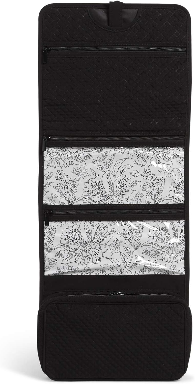100% Polyester Imported MICROFIBER -- Made from sleek & lightweight microfiber, these solid colors bring style & function to your everyday life TRAVEL READY -- Complete with carry-handles, easy-tie closure, & tuck away hanger for use at home or when you are on-the-go featuring taffeta-lined plastic pockets for your jewelry, makeup, hair accessories & some toiletries HANG IT UP -- The built-in hook allows you keep your jewelry & beauty products neat, organized, & on display - When closed, the hook simply tucks away for easy packing CHIC & ORGANIZED -- This organizer features a top zip quilted compartment for smaller cosmetics & palettes, 2 taffeta lined clear compartments for small accessories, & a plastic lined bottom compartment STYLISH & SIZED RIGHT -- The Travel Organizer measures 29 inches high, 12 inches wide, & 2 inches deep with a 5 inch handle drop & a hook for hanging