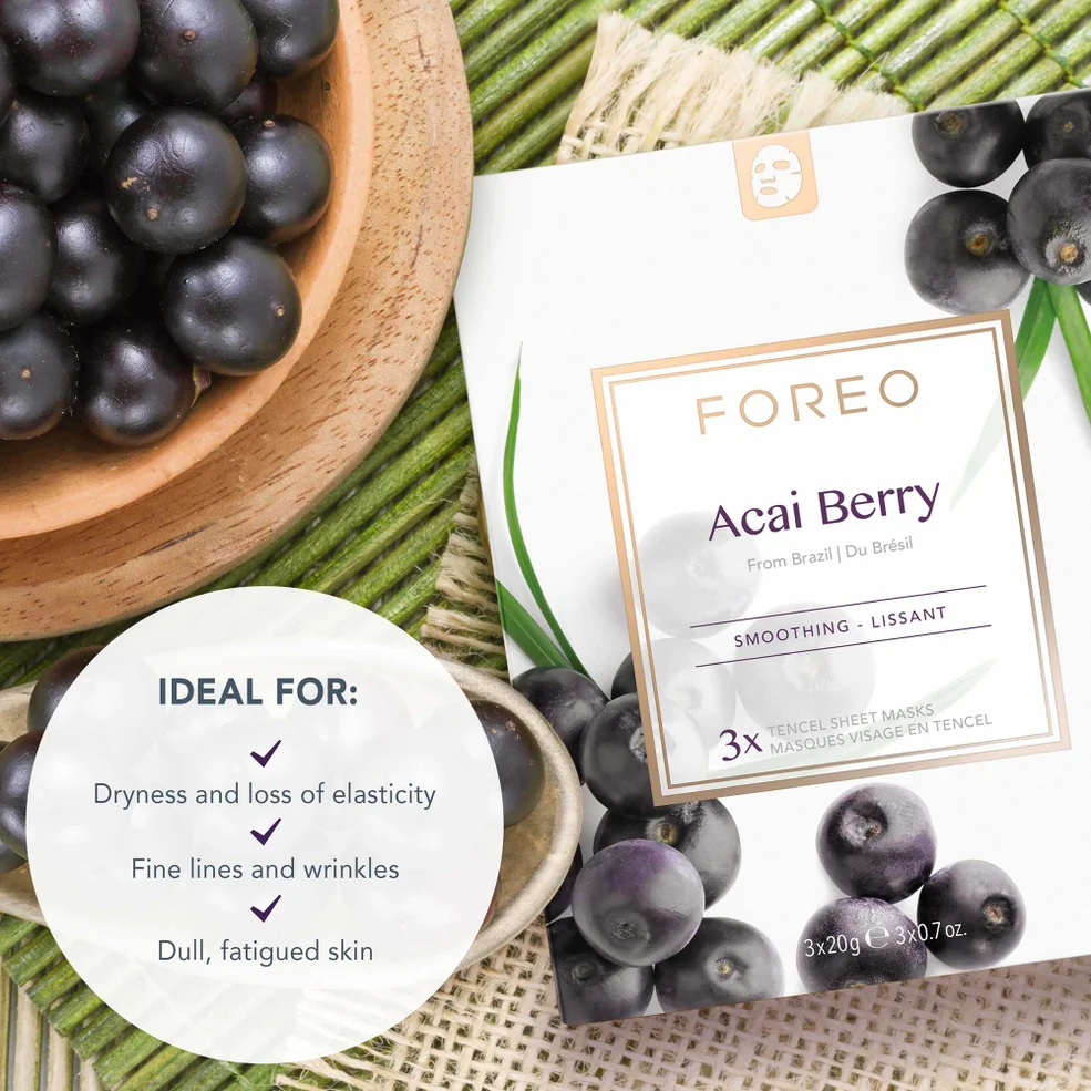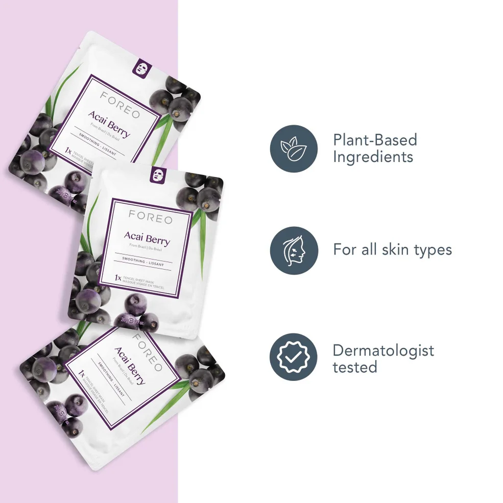 Uniting three sachets per pack, FOREO Sweden's Farm To Face masks are dermatologically-tested, cruelty-free and can be used alone or with your FOREO Cleansing Tool to maximise results.Available in three formulas, pick from 'Acai Berry' a antioxidant-rich medley of skin-protecting ingredients to help hydrate, protect and restore, 'Manuka Honey' which suits all skin types but is especially beneficial for dry, tired skin, losing elasticity, and showing premature signs of ageing or 'Green Tea' which is most beneficial to oily, stressed, and blemish-prone skin, offering a purifying facial for skin radiating with a natural, healthy glow.