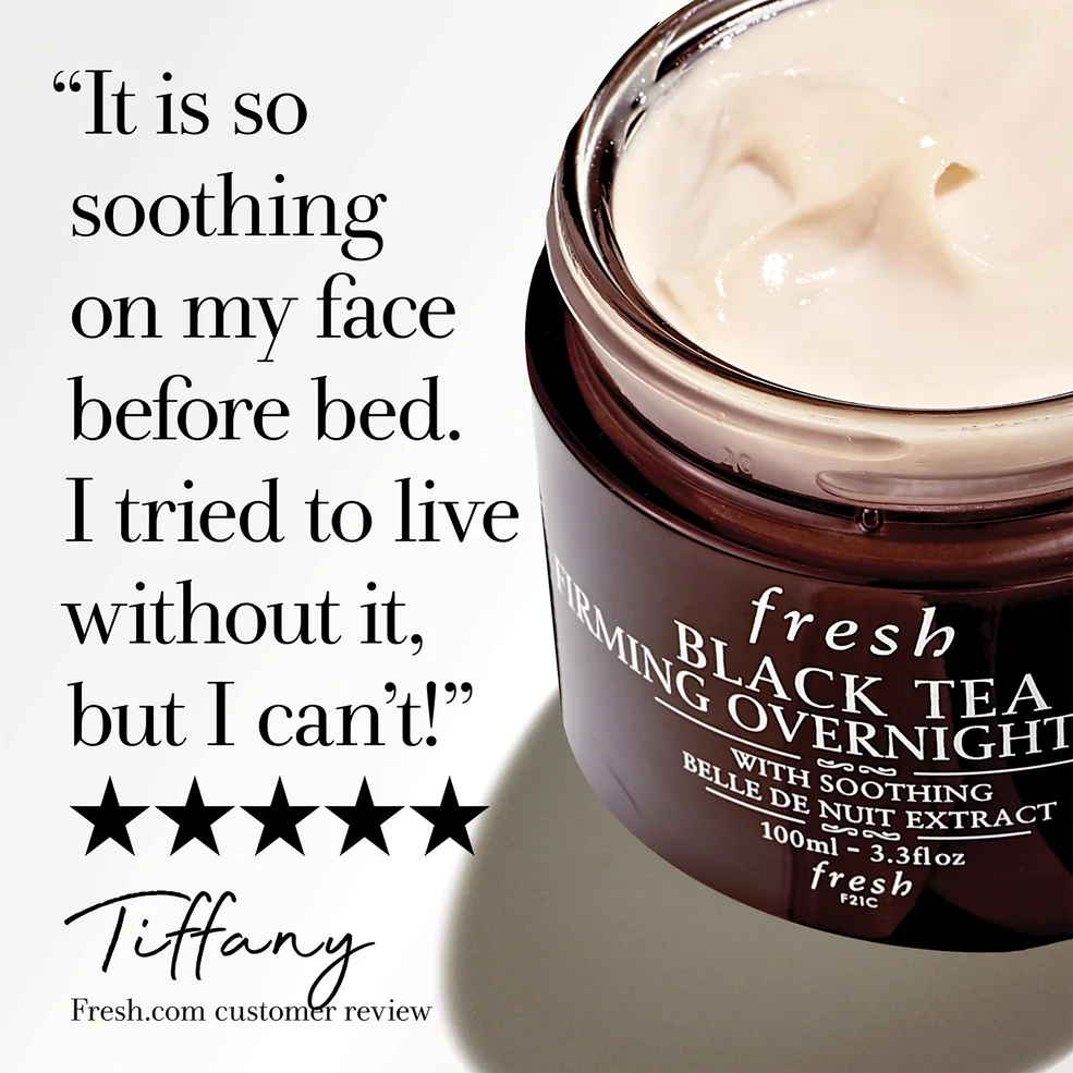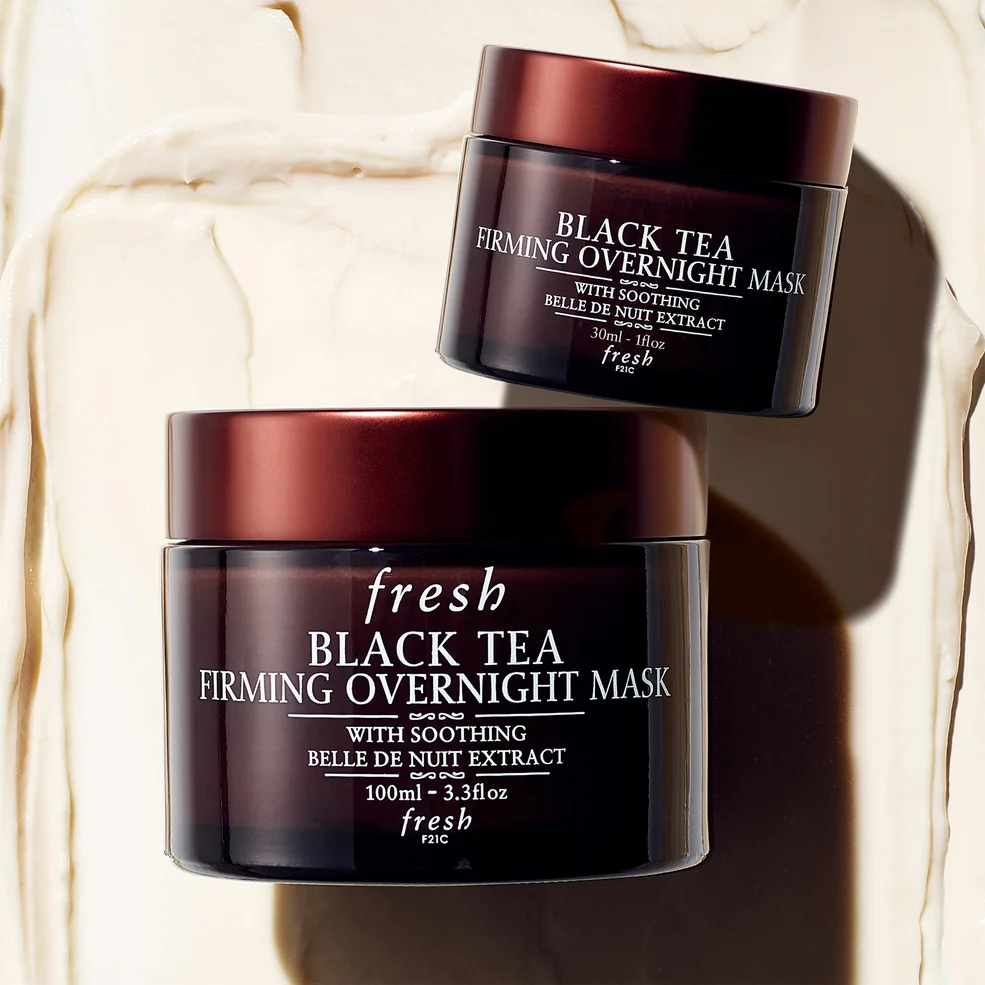 A must-add to your nighttime skin care routine, fresh's velvety-textured Black Tea Firming Overnight Mask is the ultimate hard-worker that soothes signs of tiredness and restores suppleness and elasticity while you sleep. Formulated with the brand's renowned black tea complex (made up of kombucha, black tea extract, blackberry leaf extract, and lychee seed extract) to inhibit free radical damage and improve elasticity as well as firming peptides, moisturising hyaluronic acid and belle de nuit extract, to helps to soothe and rebalance the skin. An overnight miracle worker, this will sculpt, shape and lift for a gorgeous finish.