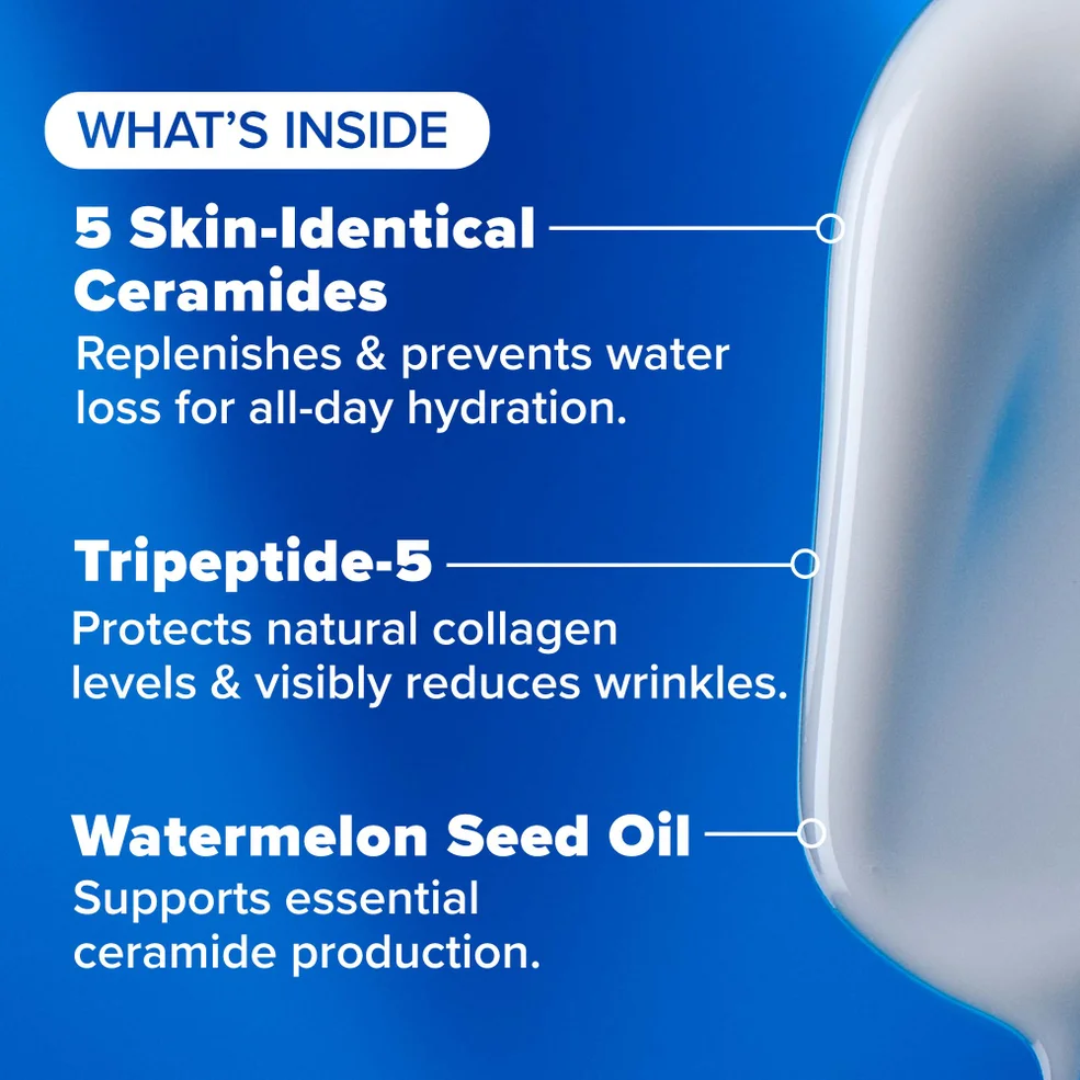 Boasting a powerful blend of five skin-identical ceramides, this rich cream provides barrier-boosting benefits as well as locking in moisture for optimal hydration. This lightweight formula is also infused with nourishing watermelon seed oil, alongside firming palmitoyl tripeptide-5 to give your skin an enviable glow. If all that wasn't enough, this luxurious lotion helps to plump your complexion. Consider it your new favourite, because after just one use, you'll wonder how you ever moisturised without it...