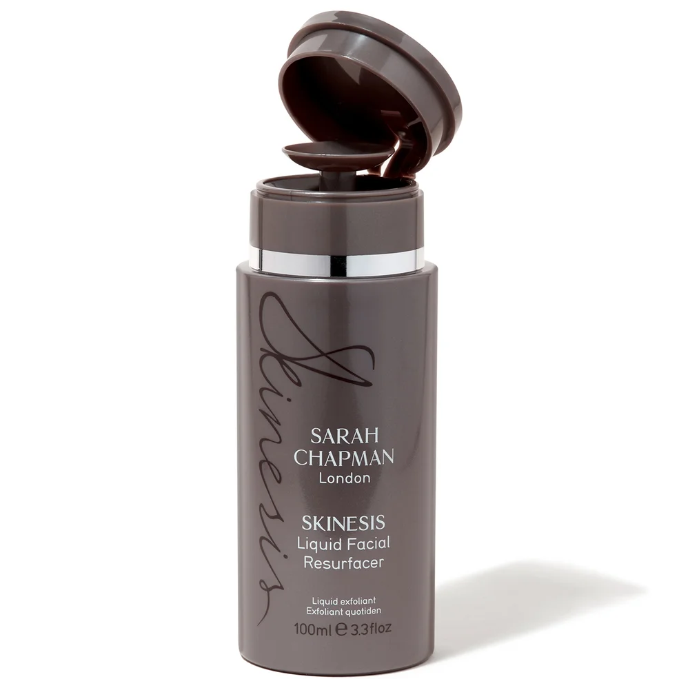Created by sought-after facialist Sarah Chapman, this Liquid Facial Resurfacer is inspired by the results-driven peels and resurfacing treatments on offer at her exclusive Skinesis clinic. Offering ongoing skin improvement at home, this gentle daily liquid resurfacer is perfect for brightening, smoothing and prepping the skin. It’s powered by a unique, carefully calibrated combination of face-friendly phytic, lactic and multi-fruit acids, blended in a pH-regulated liquid to make it suitable for daily use. Actively smoothing the skin, the formula digests dead, dulling cells to uncover radiance, while also stimulating cellular renewal. With vitamins C and E, plus hydrating sodium hyaluronate, it replenishes skin as well as exfoliating, making it perfect for those who dislike using scrubs but are on a quest for a fresh, even, glowing complexion. Daily use visibly reduces fine lines and wrinkles, evens out skin tone, texture and pigmentation, unclogs and refines pores, blasts blemishes and regulates sebum production while respecting the skin’s acid mantle. Also formulated with an uplifting blend of the highest grade essential oils of neroli, geranium and petitgrain, this is a joy to use, increasing daily cell turnover and preparing skin for maximum absorption of any actives that follow.