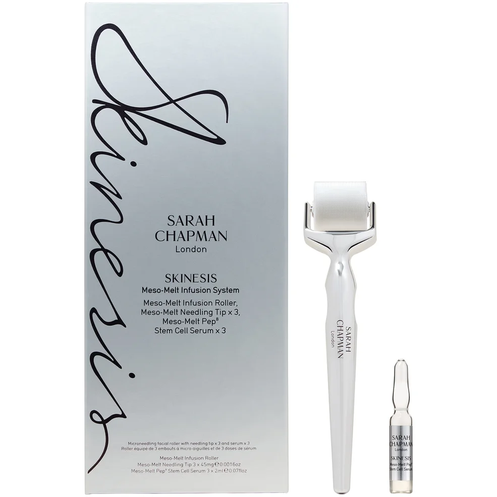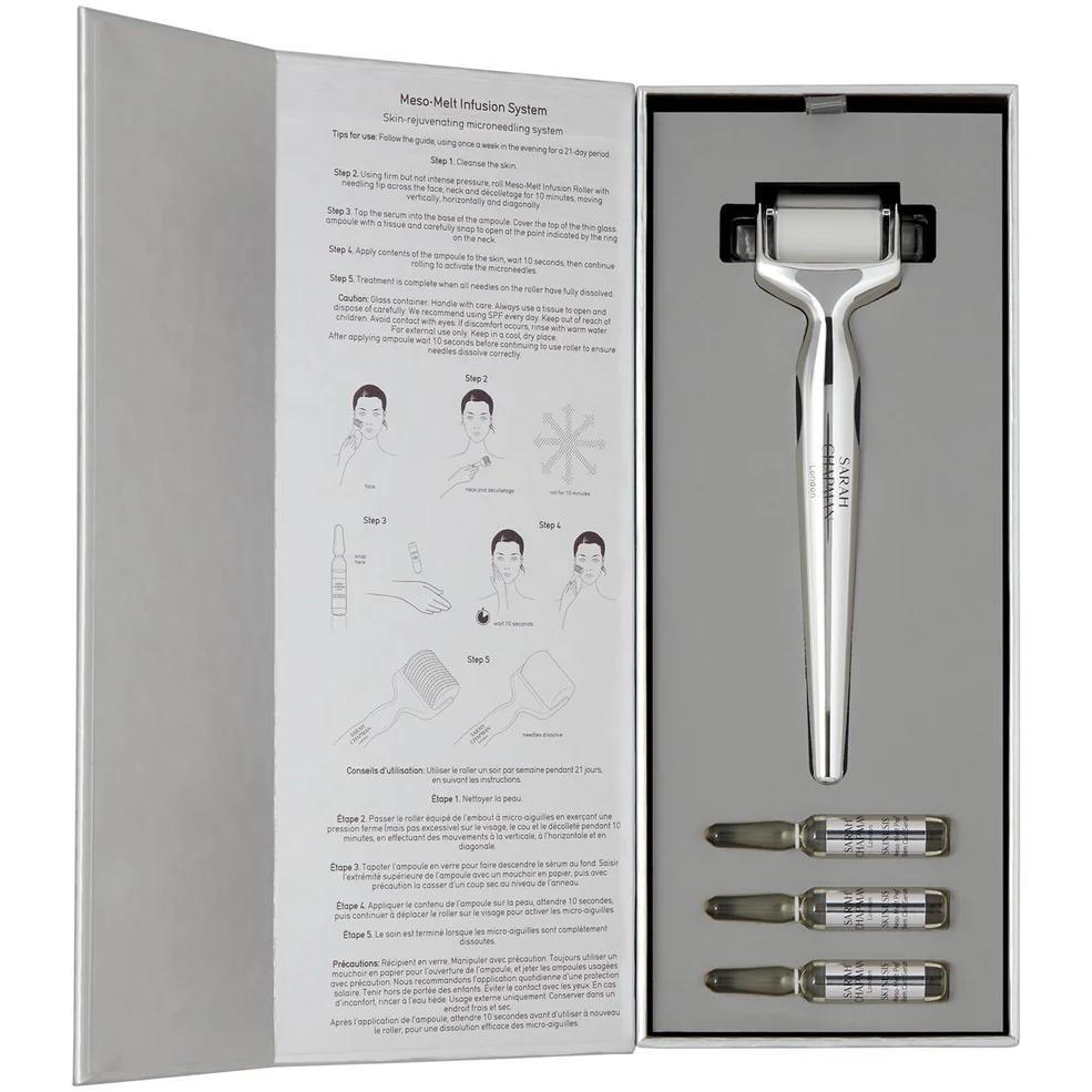 Want to get clinic results from the comfort of your own home? Let us introduce you to Sarah Chapman's latest launch, the Meso-Melt Infusion System. A system incorporating the all-new Meso-Melt Infusion Roller alongside the must-try Meso-Melt Pep⁸ Stem Cell serum, this 21-day system results in healthy, glowing and rejuvenated skin in addition to increased penetration of your skin care products.