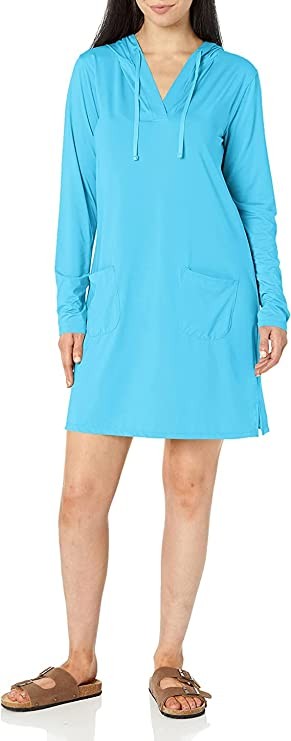 Willit Women's UPF 50+ Beach Coverup Dress SPF Long Sleeve Dress Hooded with Pockets Sun Protection Swim Cover Up